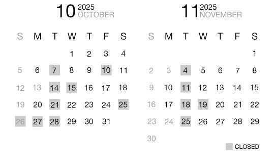 定休日 : 火曜日、第3水曜日(予約制)